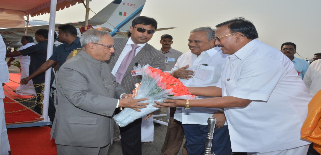 The President of India, Shri Pranab Mukherjee arriving at Chennai Airport on November 30, 2012