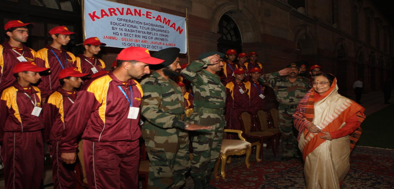 The President of India, Smt Pratibha Devisingh Patil interacting with the Students from Poonch Under 'Operation Sadbhavna' at Rashtrapati Bhavan in New Delhi on Oct 18, 2010