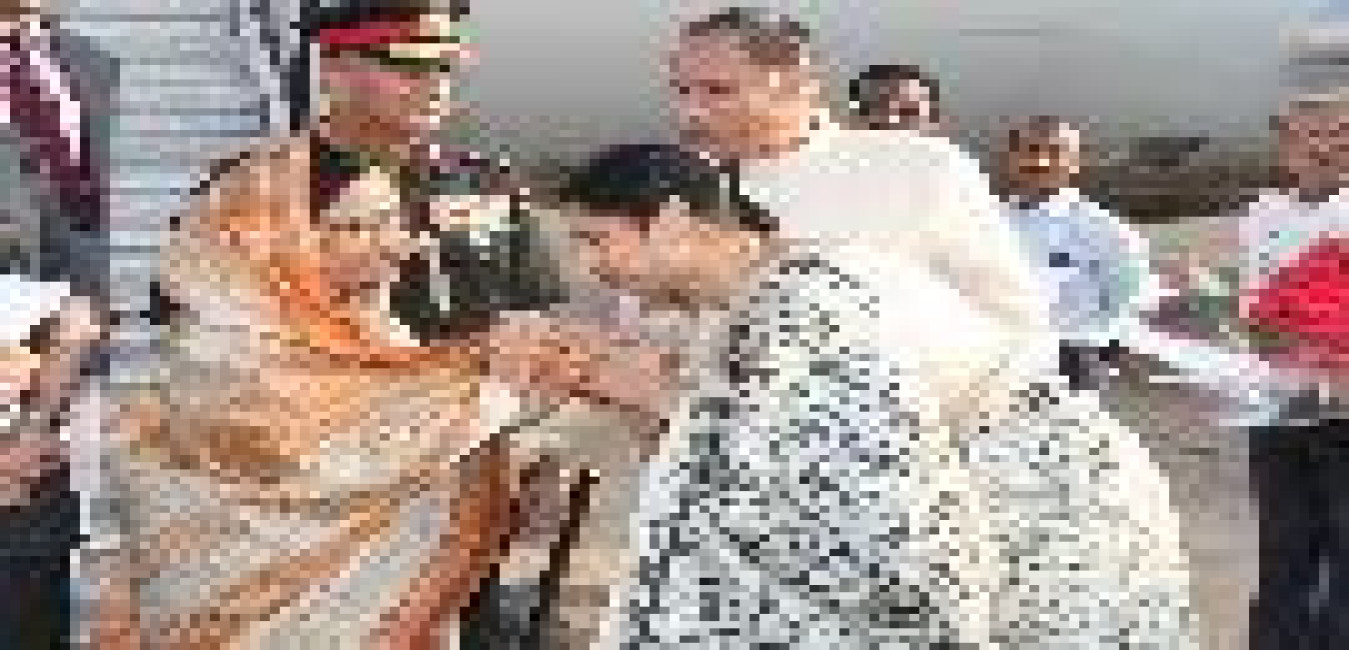 The President of India, Smt Pratibha Devisingh Patil being welcomed by the Chief Minister of Uttar Pradesh, Kumari Mayawati at Lucknow Airport in Uttar Pradesh on Sep 23, 2008