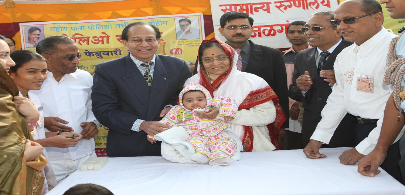 The President of India, Smt Pratibha Devisingh Patil administering the Polio Drops to Children at the Pulse Polio Immunisation Camp at Jalgaon in Maharashtra on Feb 10, 2008