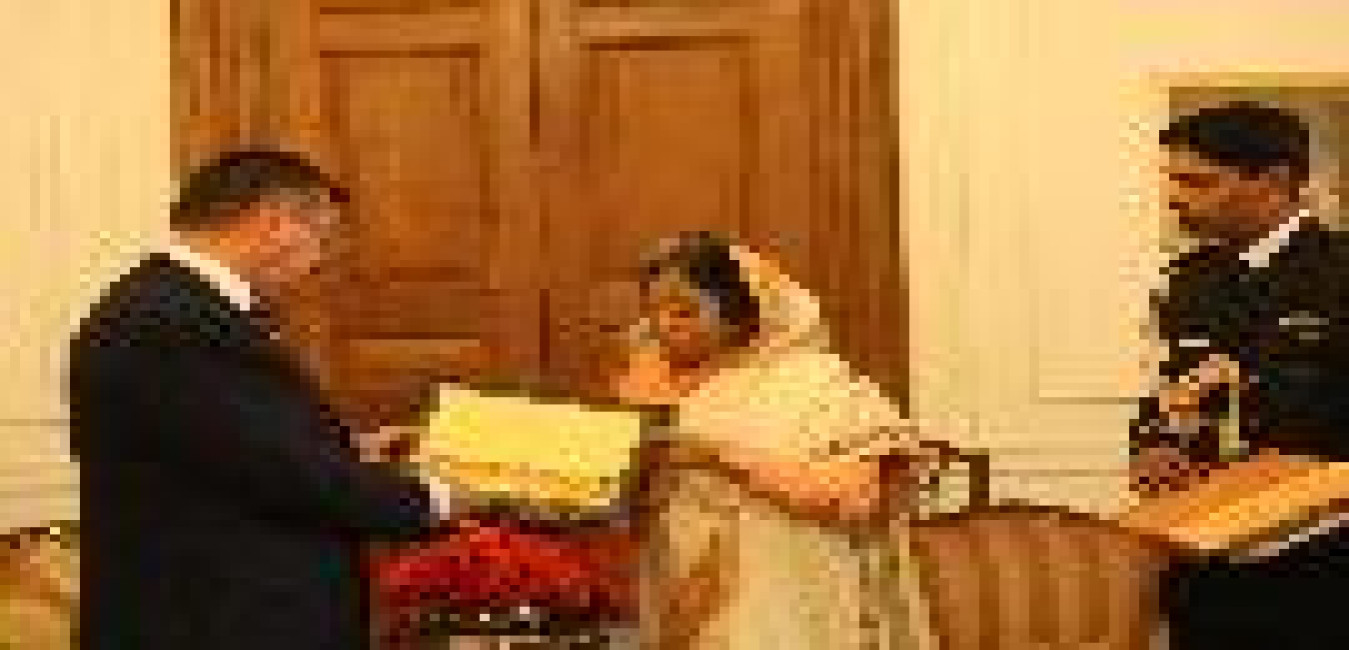 The Ambassador-Designate of Greece to India, HE Mr Stavros Lykidis presenting his credential to the President of India, Smt Pratibha Devisingh Patil at Rashtrapati Bhavan in New Delhi on Feb 13, 2008