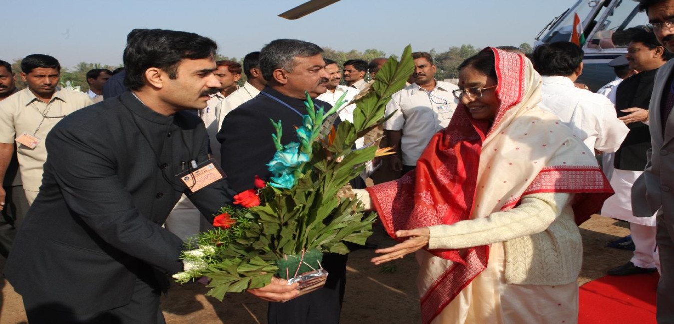 The President of India, Smt Pratibha Devisingh Patil before departure from Latur Helipad in Maharashtra on Jan 19, 2008