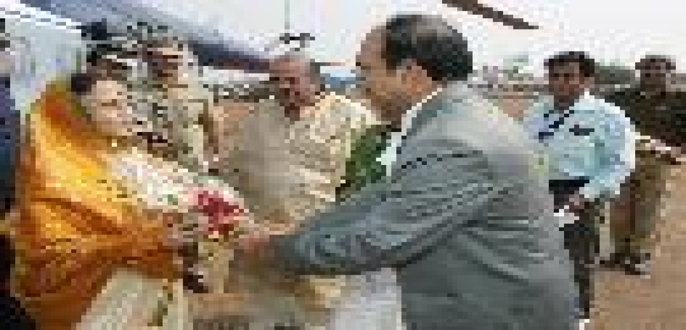 The President of India, Smt Pratibha Devisingh Patil being welcomed by the Governor of Andhra Pradesh, Shri N D Tiwari and Chief Minister of Andhra Pradesh, Shri Konijeti Rosaiah at Hyderabad Airport in Andhra Pradesh on Nov 30, 2009