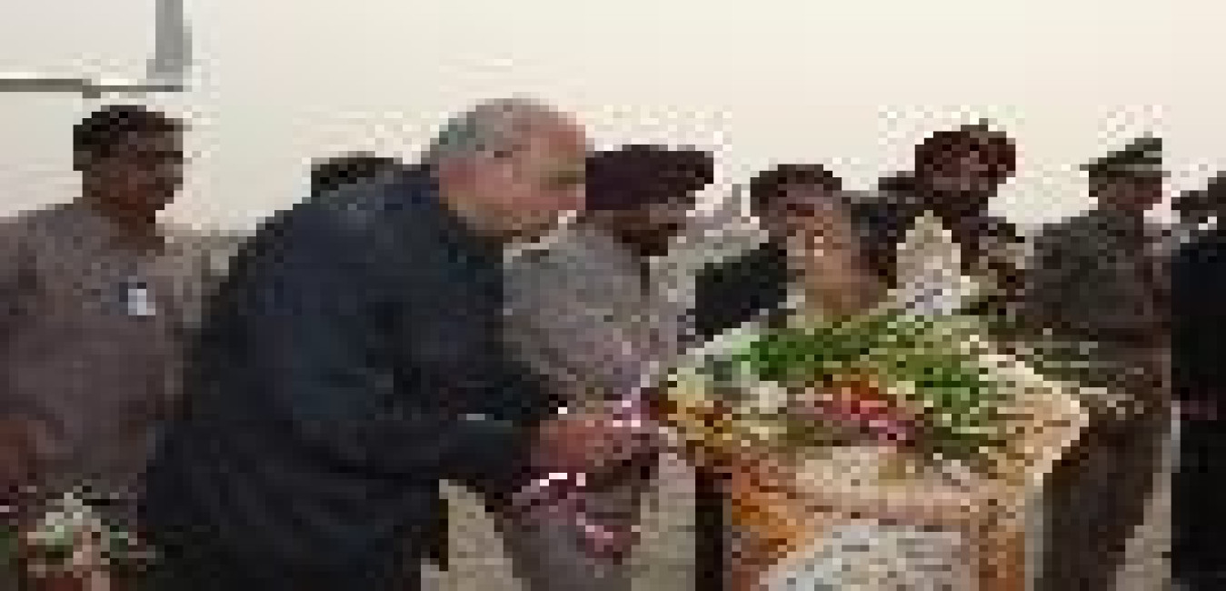 The President of India, Smt Pratibha Devisingh Patil being welcomed by the Chief Minister of Rajasthan, Shri Ashok Gehlot at Jodhpur Airport in Rajasthan on Dec 04, 2011