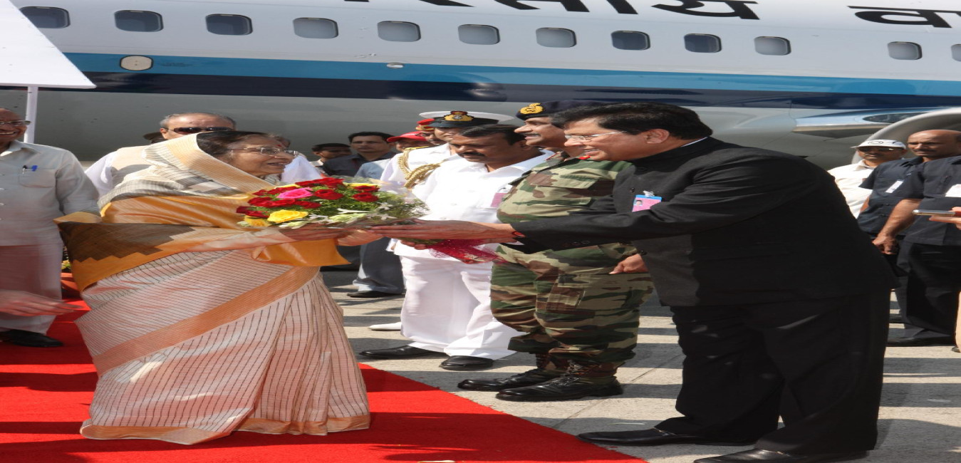 The President of India, Smt Pratibha Patil before departure from Kolkata Airport in West Bengal on Nov 30, 2011
