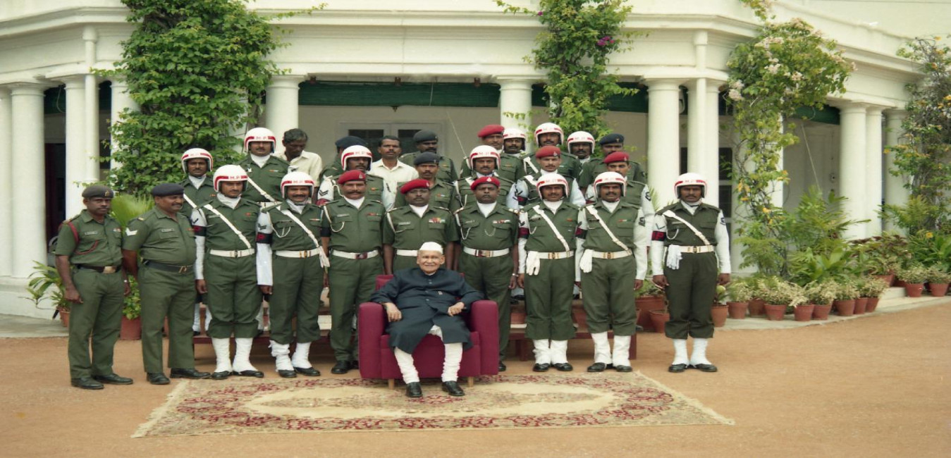 The President of India, Dr. Shankar Dayal Sharma in group photographs with the Officers and Staff of Rashtrapati Nilayam, in Hyderabad on November 07, 1996.