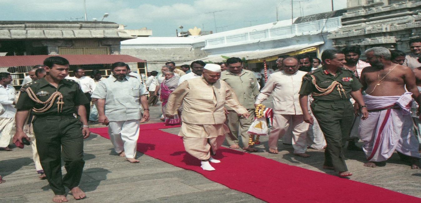 The President of India, Dr. Shankar Dayal Sharma visits Srivari Temple, in Tirupati on January 18, 1997.
