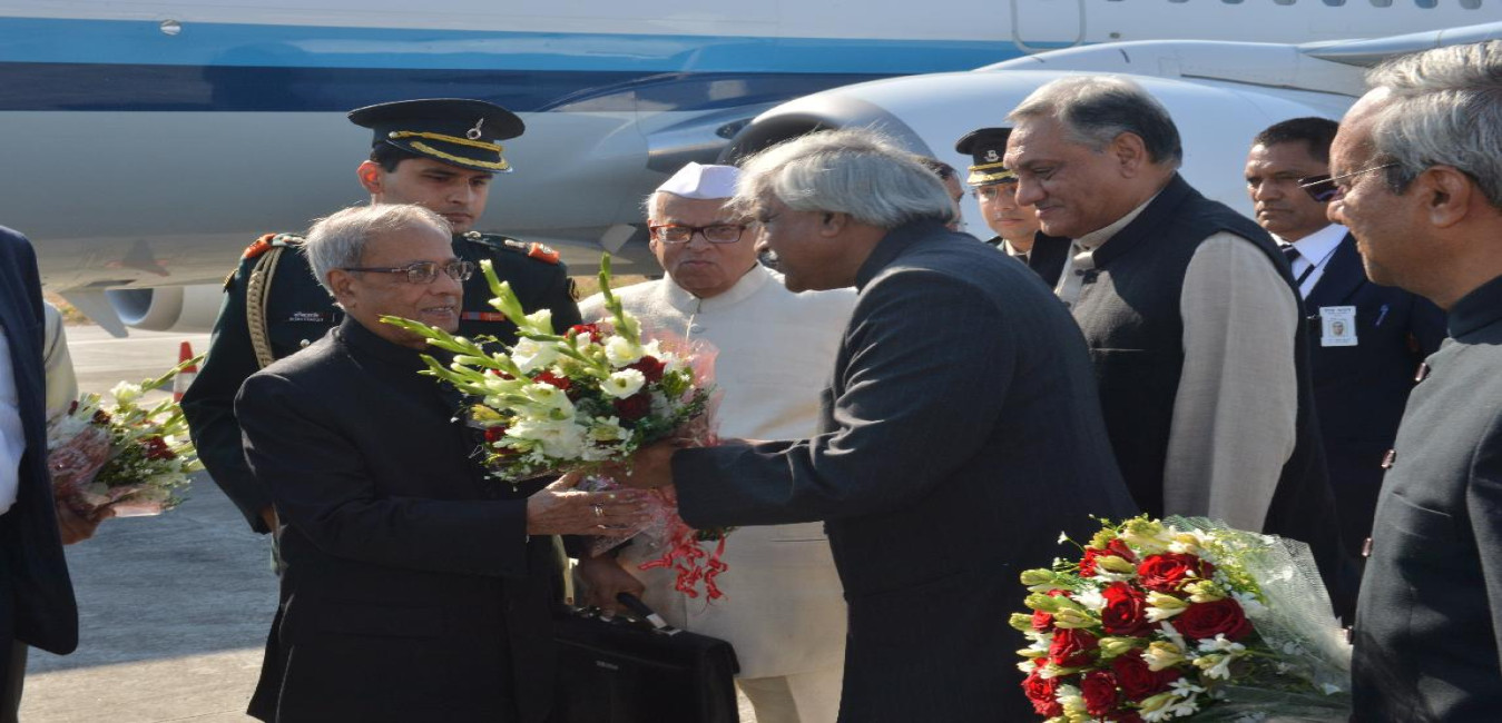 The President of India, Shri Pranab Mukherjee Arriving at Dehradun on Dec 09, 2012
