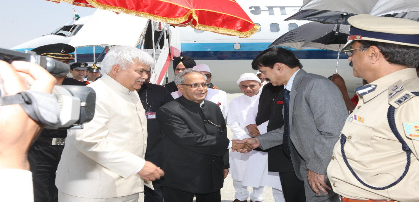 The President of India, Shri Pranab Mukherjee Arrival at Lucknow Airport on 10 May 2013