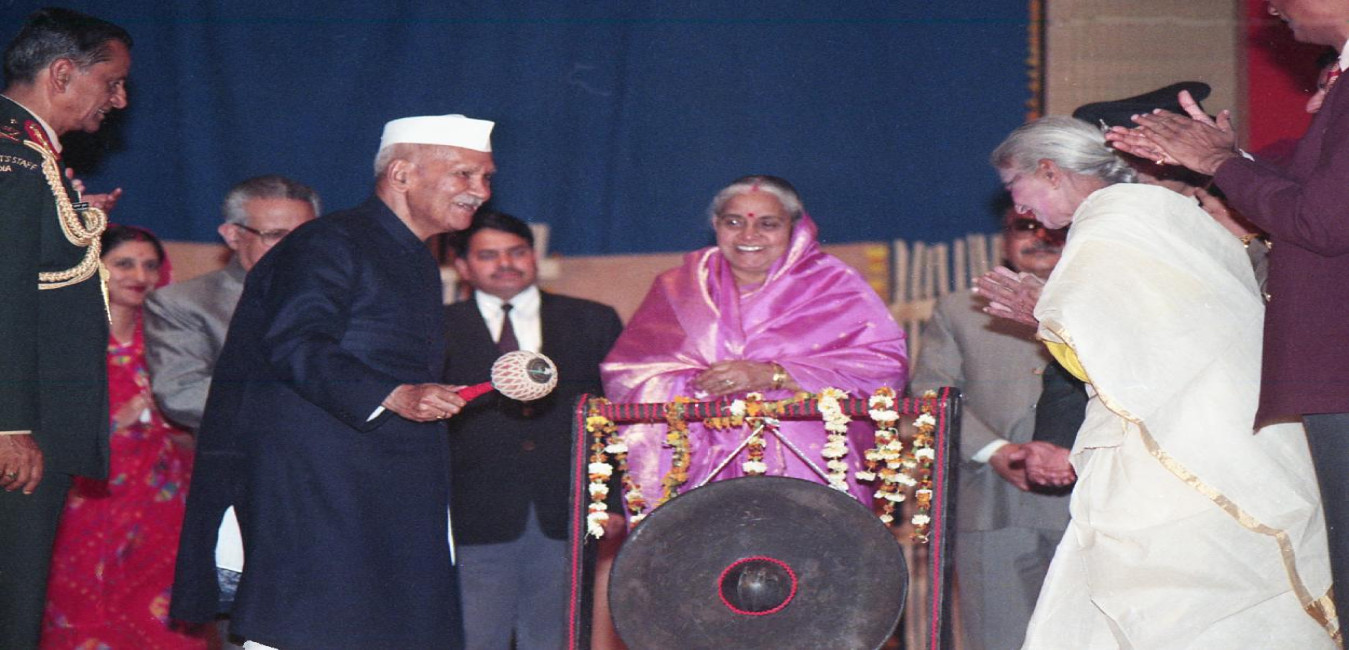 The President of India, Dr. Shankar Dayal Sharma inaugurating the Golden Jubilee of Hamidia College of Arts & Commerce, at Bhopal on February 28, 1997. Smt. Vimala Sharma, the Governor, Madhya Pradesh, Mohammad Shafi Qureshi and Chief Minister, Madhya Pradesh, Shri Digvijaya Singh are also seen.