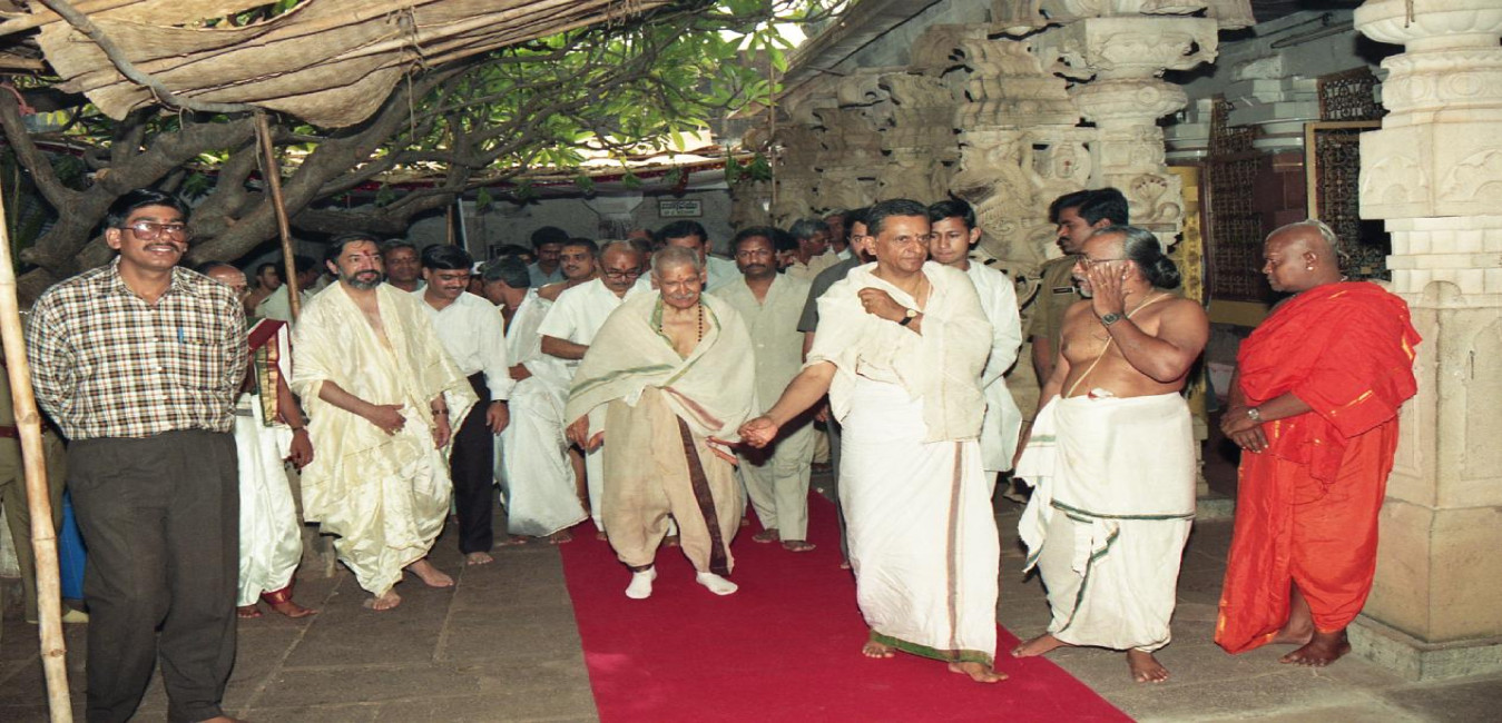 The President of India, Dr. Shankar Dayal Sharma visiting Srivari Temple, at Tirupati, in Andhra Pradesh on March 22, 1997.