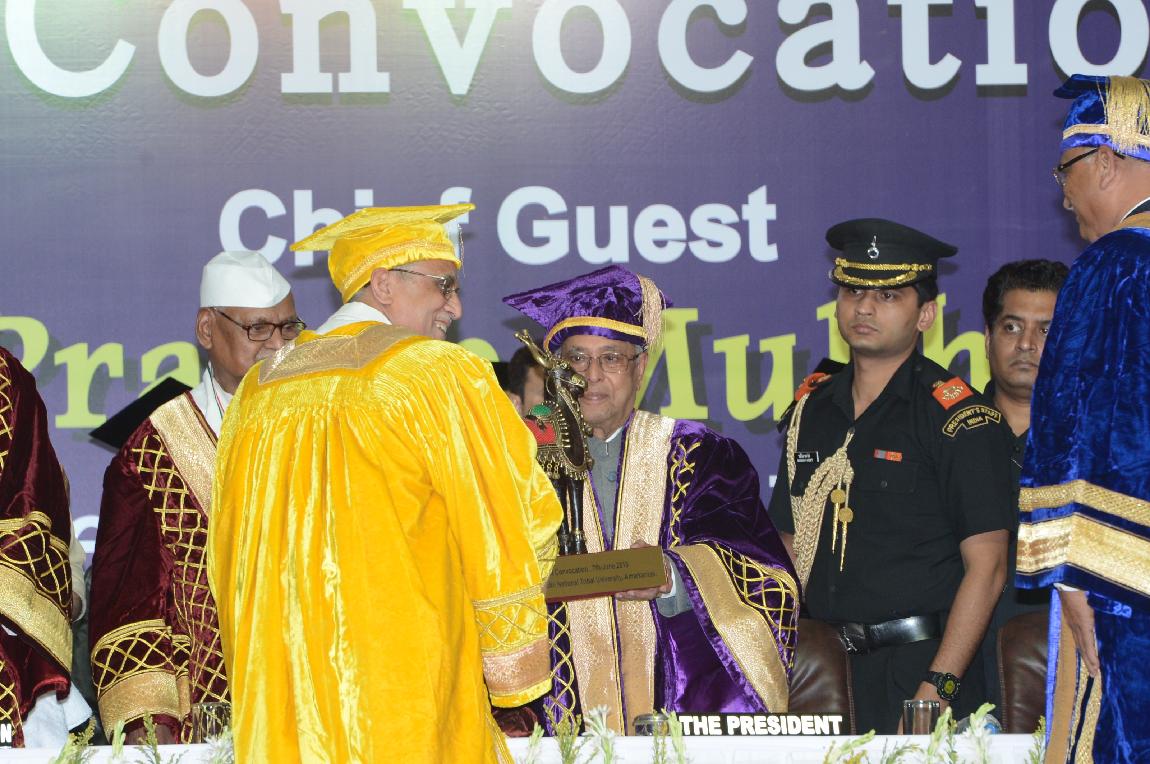 The President of India Shri Pranab Mukherjee at the First Convocation of Indira Gandhi National Tribal University (IGNTU) on 7 June 2013