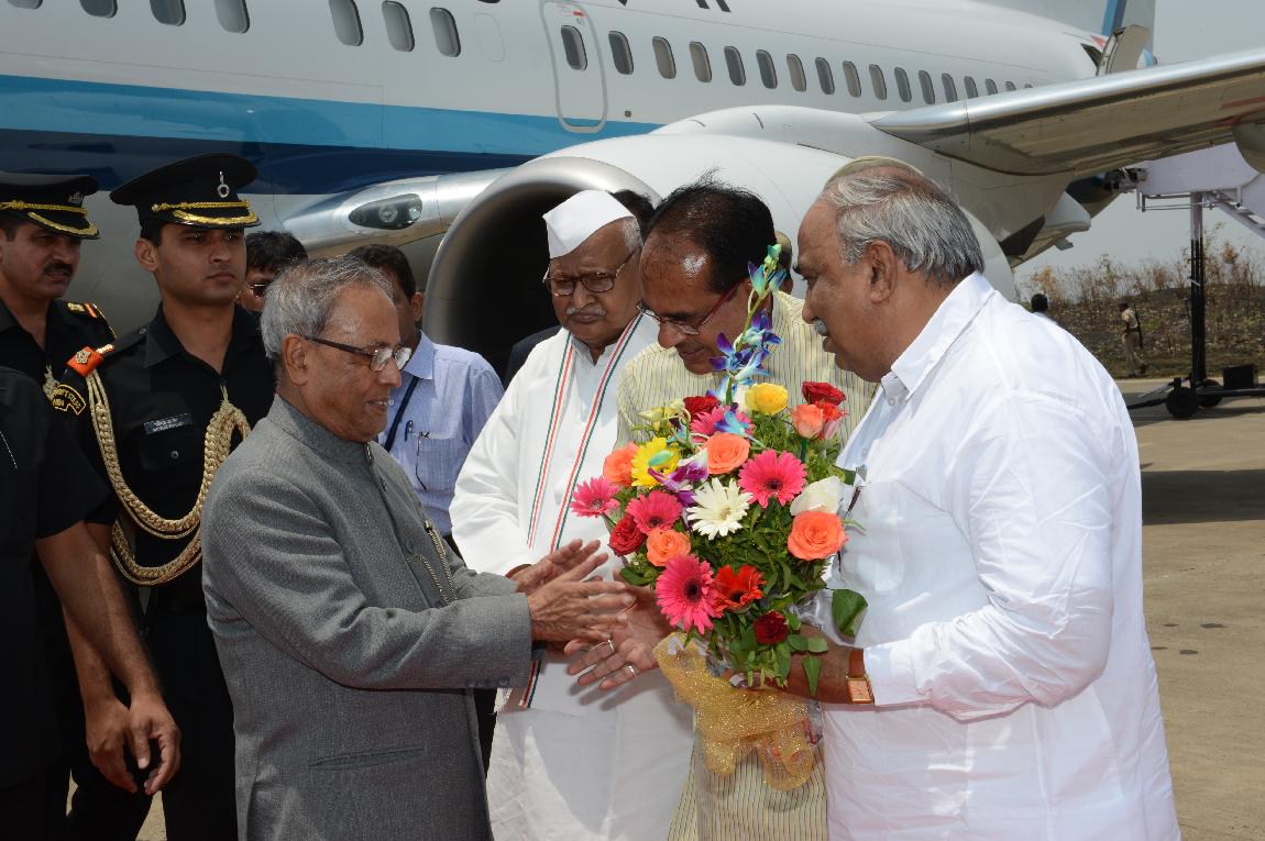 The President of India, Shri Pranab Mukherjee Arrival at Latur Airport on 31 May 2013