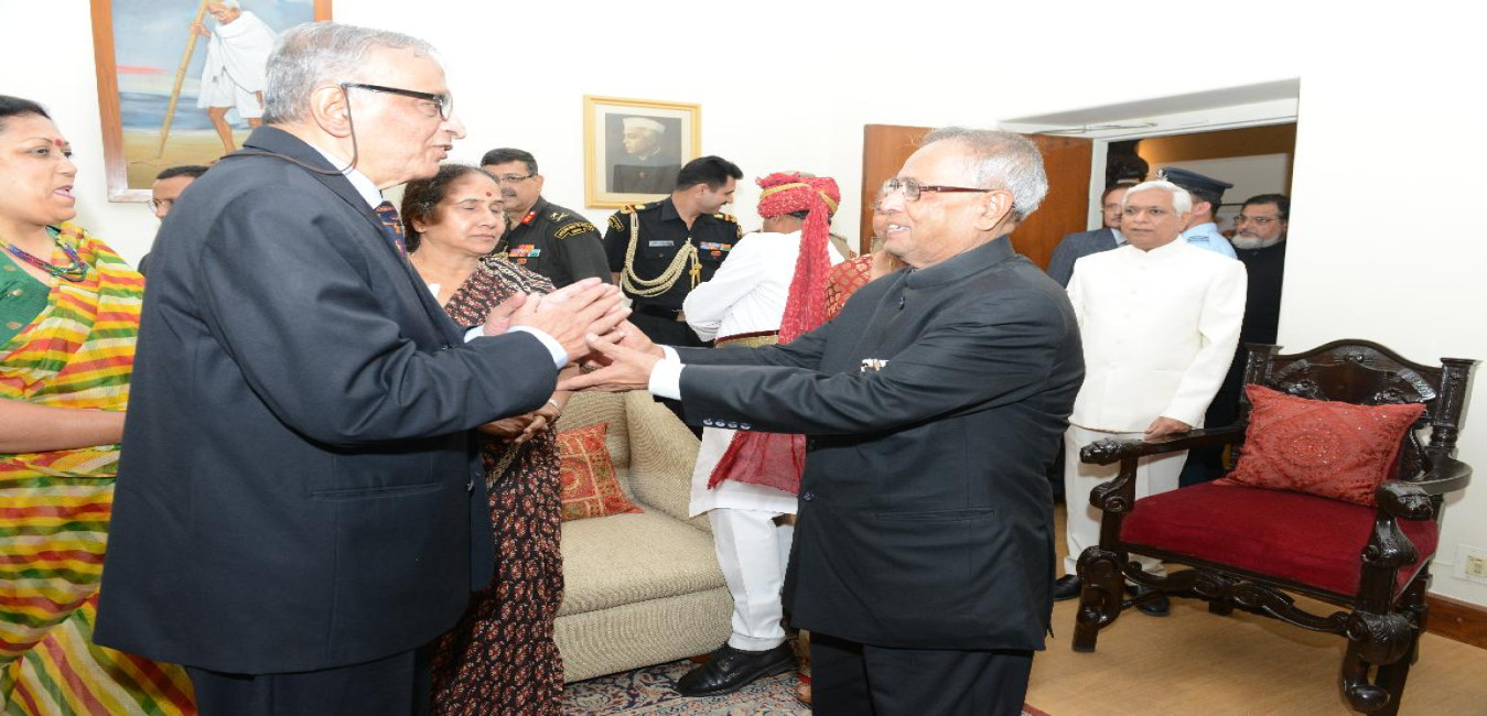 The President of India Shri Pranab Mukherjee Attending Group Photograph at State Guest House Jodhpur on July 10, 2013