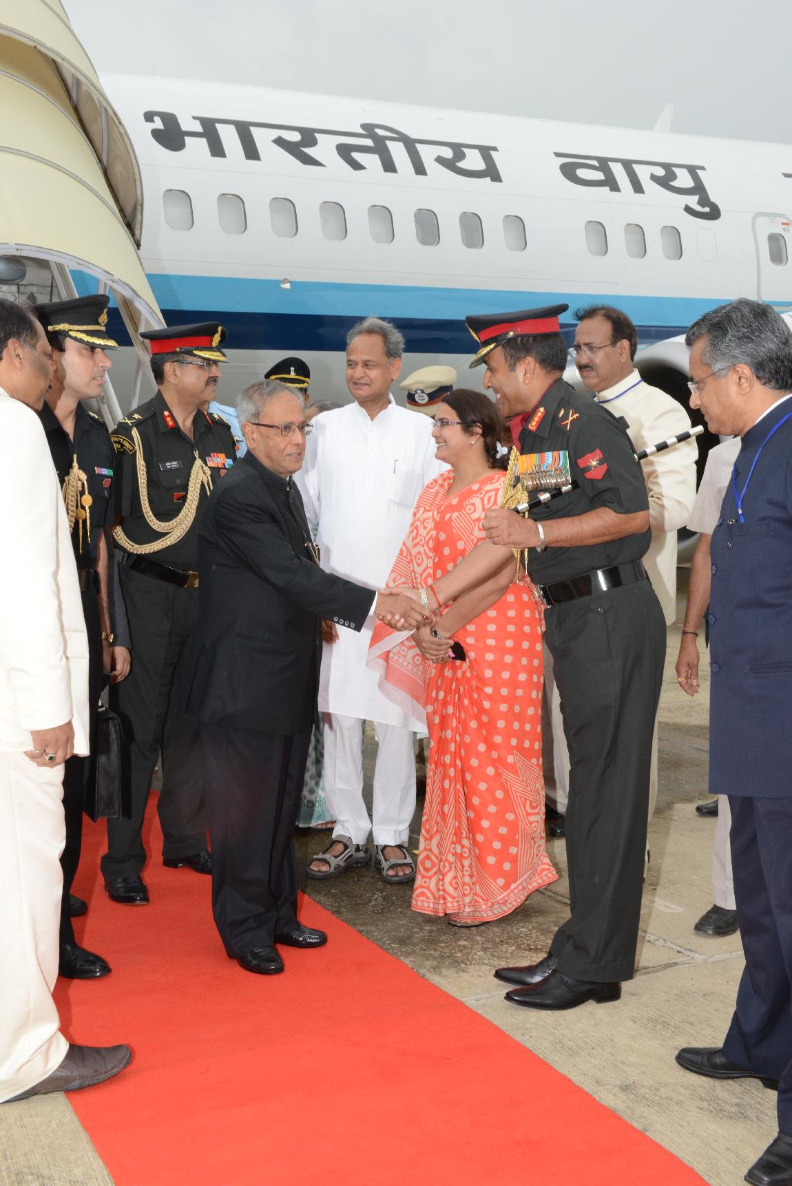 The President of India Shri Pranab Mukherjee Arriving at Jodhpur Airport on July 10, 2013