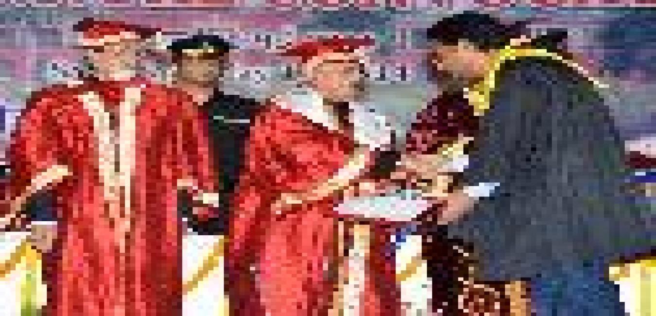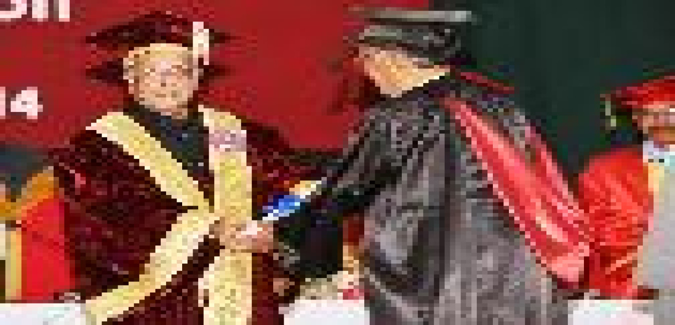 The President of India, Shri Pranab Mukherjee conferring Honorary Degrees to Shri Rishang Keishing and Shri L Birendrakumar Singh during 14th Convocation of Manipur University at Canchipur in Imphal, Manipur, The President also went around an Innovation Exhibition after inauguration of it on April 29, 2014
