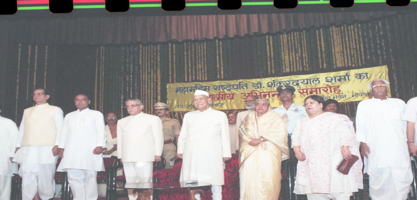 The President of India, Dr. Shankar Dayal Sharma being felicitated during a Civic Reception, at Bhopal on July 13, 1997