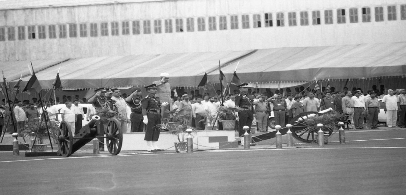 The President of India, Dr. Shankar Dayal Sharma inspecting Guard of Honour on his departure from Bhopal airport on July 13, 1997