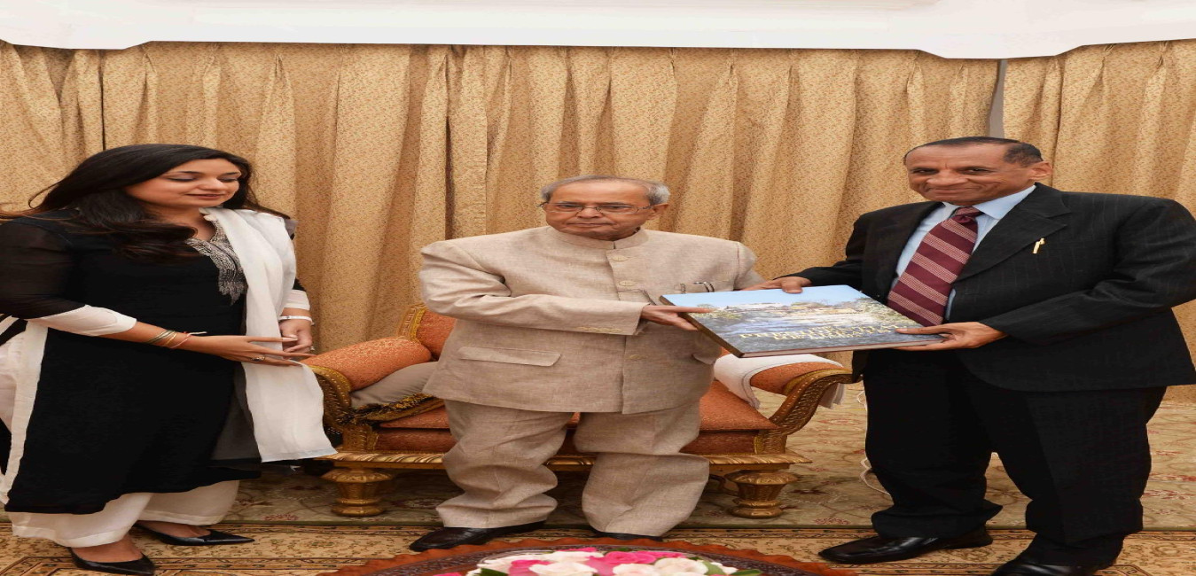 The President of India, Shri Pranab Mukherjee meeting with Shri Girish Kumar Sanghee, at Rashtrapati Nilayam, Bolarum, in Secunderabad on December 21, 2015.