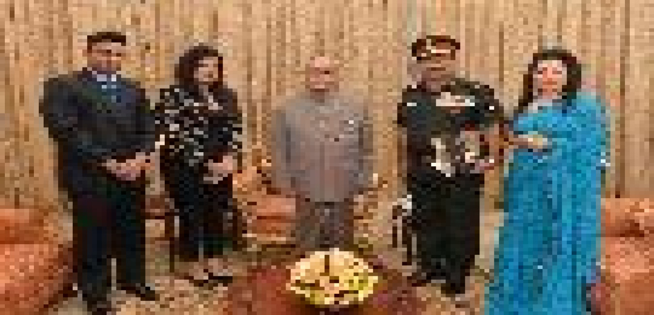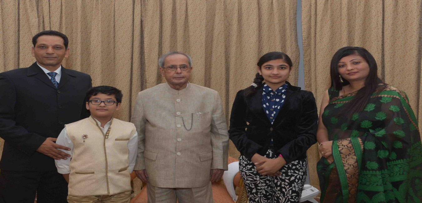 The President of India, Shri Pranab Mukherjee meeting with Smt. & Col. R.S. Dadhwal with others, at Rashtrapati Nilayam, Bolarum, in Secunderabad on December 24, 2015.