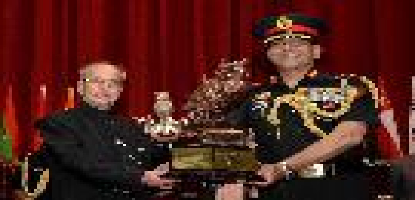 The President of India, Shri Pranab Mukherjee being presented the Banner & Memento by Lt. Gen. SK Gadeock, Commandant DSSC, at the Convocation of the 71st Staff Course of Defence Services Staff College (DSSC), at Wellington, Nilgiris in Tamil Nadu on April 15, 2016.