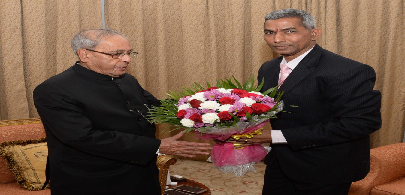 The President of India, Shri Pranab Mukherjee meeting with Shri Justice Ramesh Ranganathan, Acting Chief Justice of Telangana and Andhra Pradesh High Court , at Rashtrapati Nilayam, Bolarum, in Secunderabad on December 24, 2016.