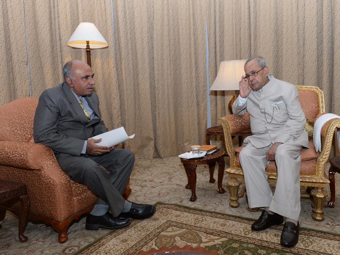The President of India, Shri Pranab Mukherjee meeting with Shri Bandaru Dattatreya, Union Minister of State (Independent Charge) for Labour & Employment, at Rashtrapati Nilayam, Bolarum, in Secunderabad on December 25, 2016.