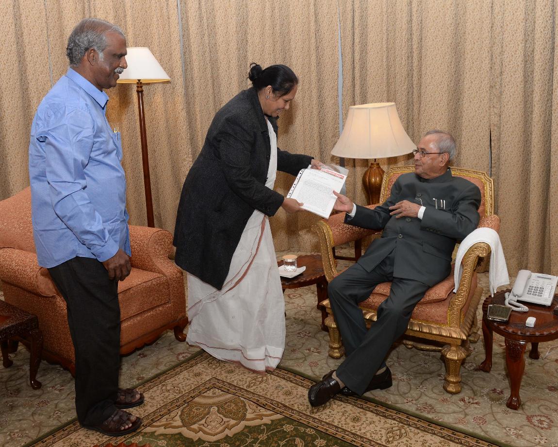 The President of India, Shri Pranab Mukherjee meeting with Smt. Naga Lakshmi, State President, Samajwadi Party Telengana State, at Rashtrapati Nilayam, Bolarum, in Secunderabad on December 25, 2016.