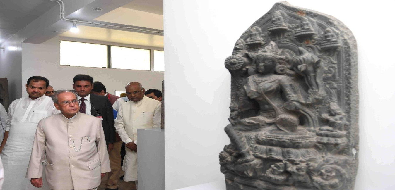 The President of India, Shri Pranab Mukherjee during his visit to the Vikramshila University Monuments and Museum, at Vikramshila University, in Bhagalpur District, Bihar on April 03, 2017.