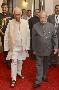 The President of India, Shri Pranab Mukherjee receiving the books Jnan, A-Jnan O Bijnan: Popper-er Jnantatta and Samudra Banijjer Prekshite Sthala Banijjya, Bharat Mahasagar Anchal, 1500-1800 from Dr. Sushil Chaudhury and Dr. (Smt.) Mahasweta Chaudhury, at Kolkata, in West Bengal on May 19, 2017.