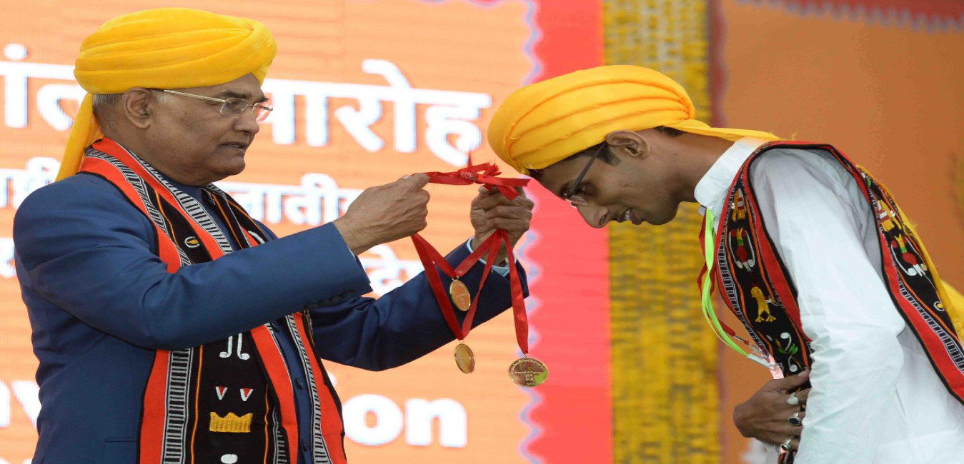 The President of India, Shri Ram Nath Kovind presenting degree certificates and gold medals to the students, at the 2nd convocation of Indira Gandhi National Tribal University (IGNTU), at Amarkantak, in Madhya Pradesh on November 11, 2017.