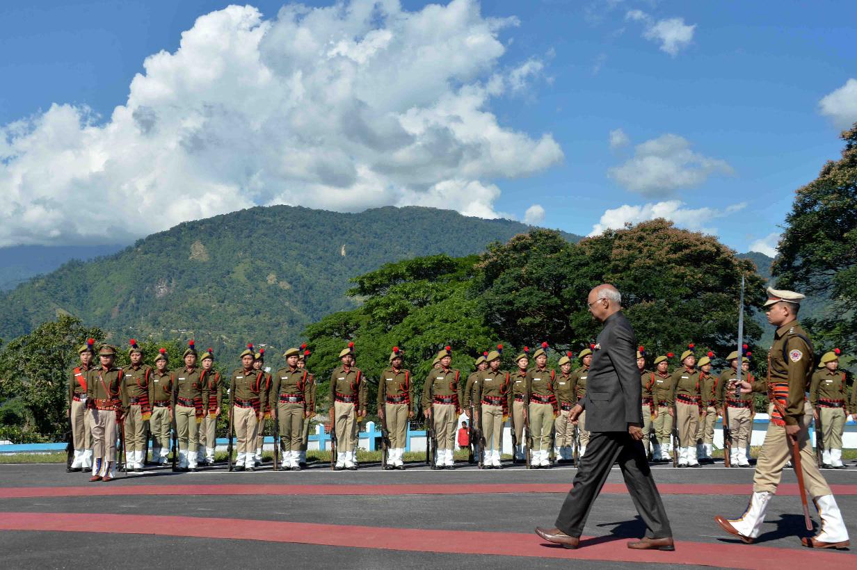 The President of India, Shri Ram Nath Kovind inspecting the Guard of Honour, on his arrival at Raj Bhavan Helipad, Itanagar, in Arunachal Pradesh on November 19, 2017.