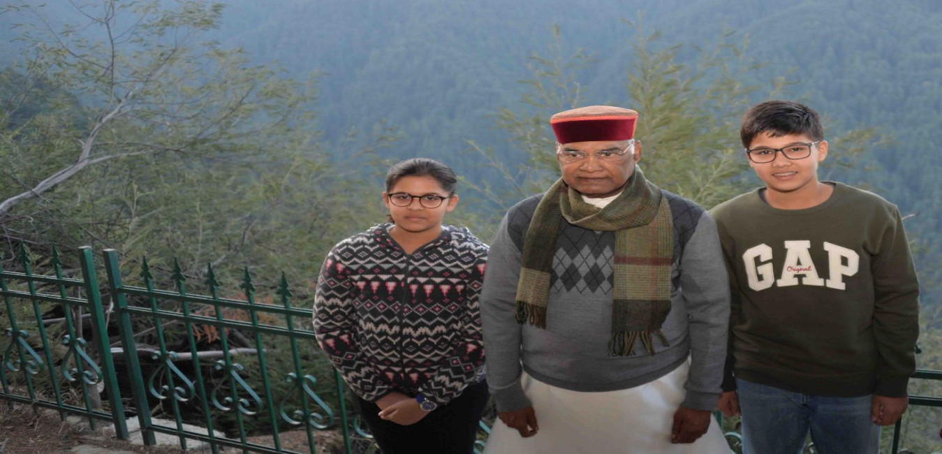 The President of India, Shri Ram Nath Kovind along with his grandchildren at a book shop, at Mall Road, in Shimla on May 22, 2018.