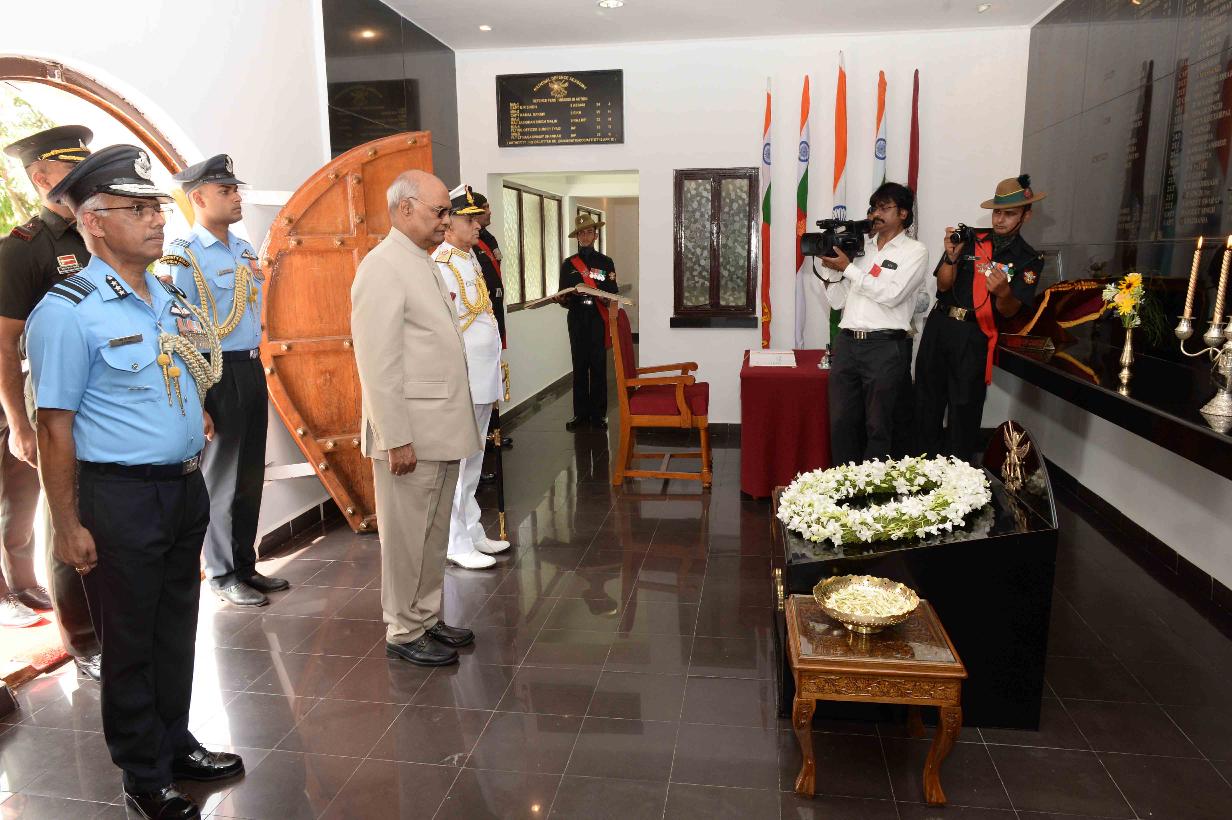 The President of India, Shri Ram Nath Kovind paying homage at Hut of Remembrance (HOR), at NDA Khadakwasla, Pune, in Maharashtra on May 30, 2018.