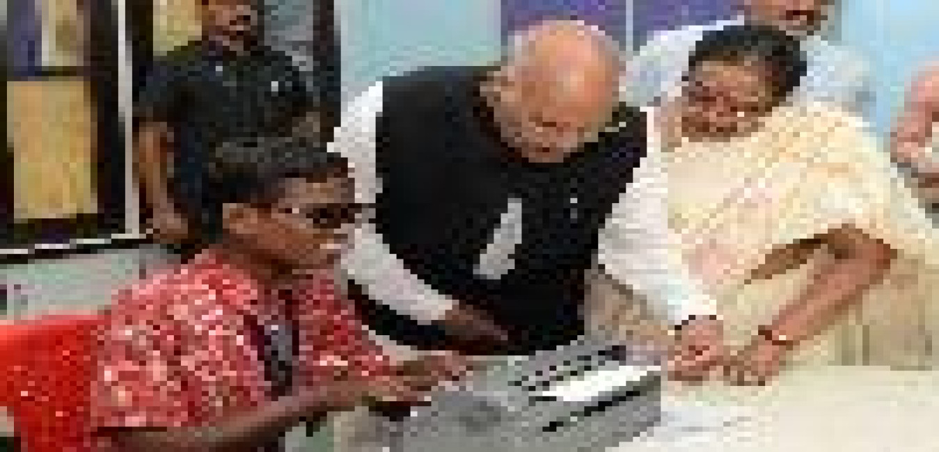 The President of India, Shri Ram Nath Kovind interacting with Divyang Students at Saksham School, Shri Atal Bihari Vajpayee Education City, at Jawanga, Dantewada, in Chhattishgarh on July 25, 2018.