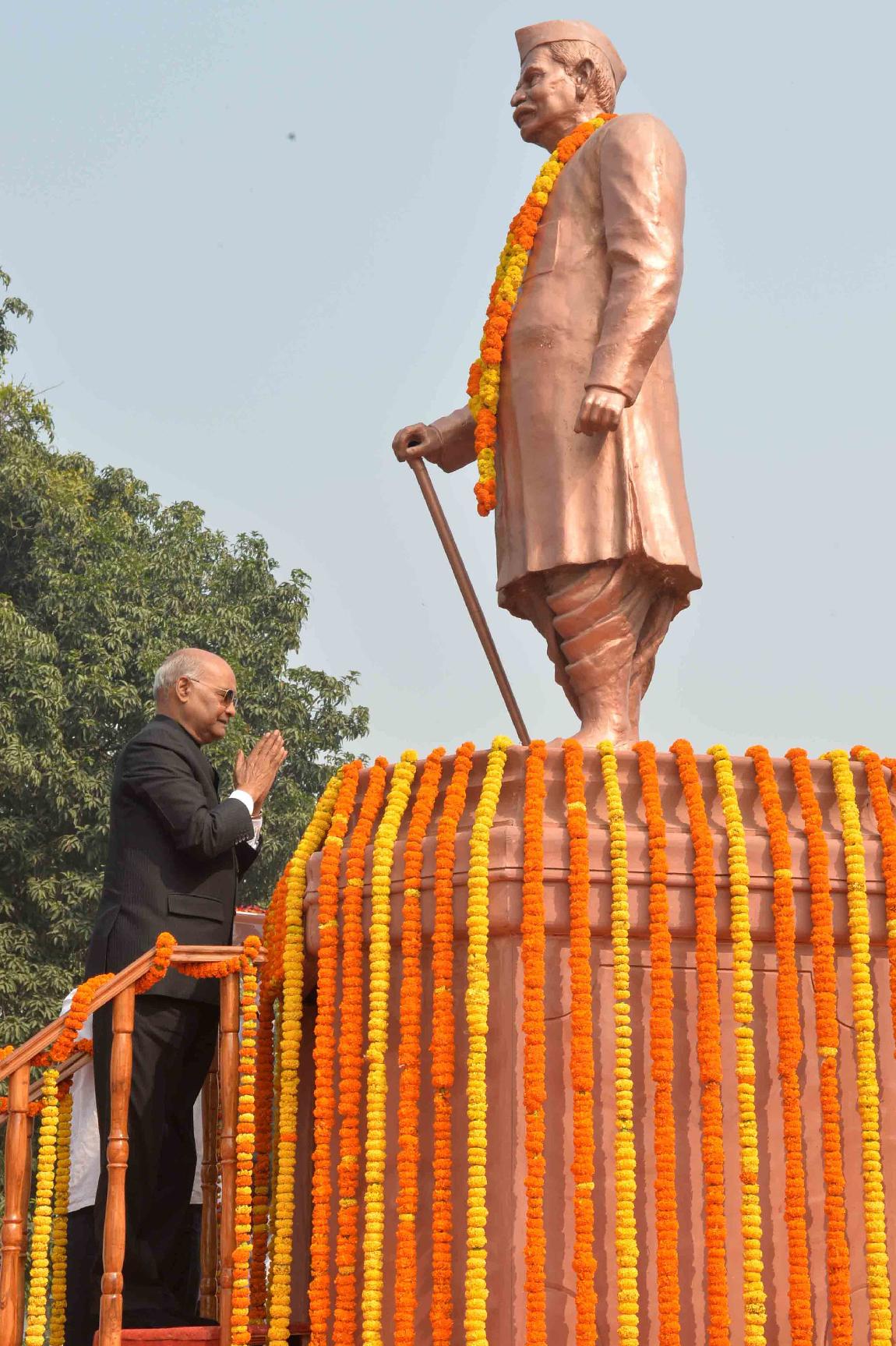 The President of India, Shri Ram Nath Kovind paying floral tributes at the Statue of Dr. Rajendra Prasad, at Samastipur, in Bihar on November 15, 2018.