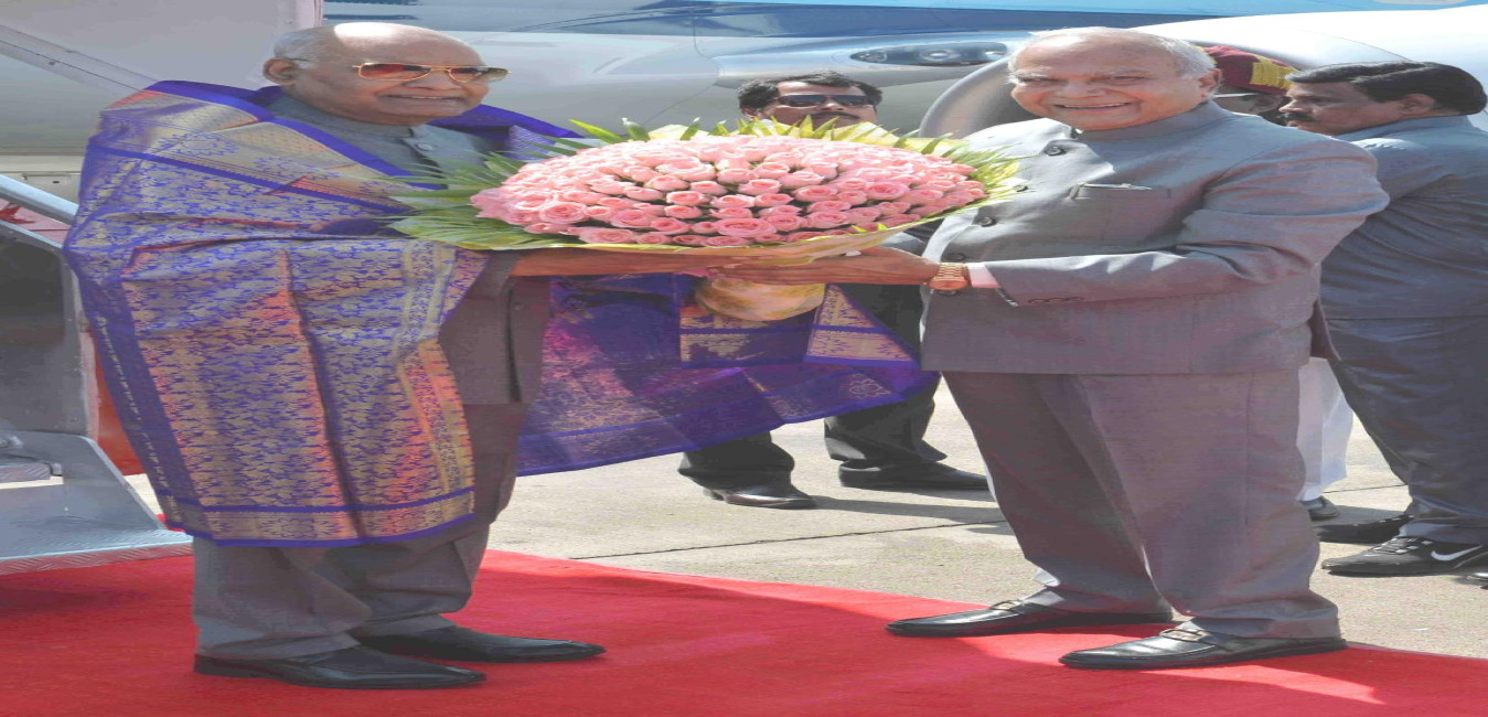 The President of India, Shri Ram Nath Kovind being received by the Governor, Tamil Nadu, Shri Banwarilal Purohit, at Coimbatore, in Tamil Nadu on March 03, 2019.