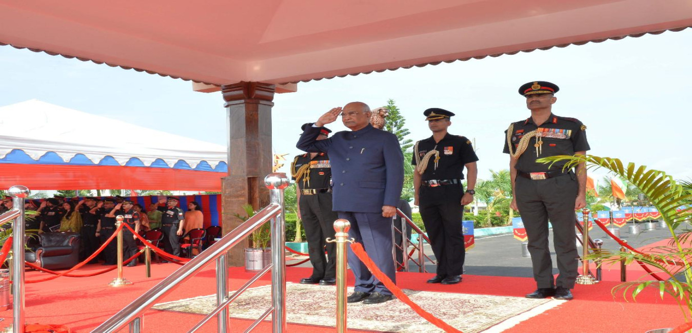 The President of India, Shri Ram Nath Kovind presenting Colours to Corps of Army Air Defence, at a ceremony, at Gopalpur, Odisha on September 28, 2019.