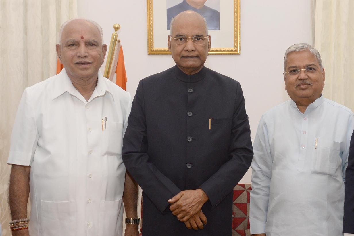 The Chief Minister of Karnataka, Shri B.S. Yediyurappa along with the Deputy Chief Minister, Shri Govind Karjol calling on the President of India, Shri Ram Nath Kovind, in Bengaluru, Karnataka on October 12, 2019.