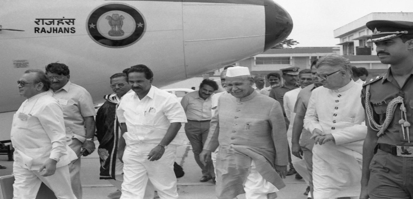 The President of India, Dr. Shankar Dayal Sharma being received by the Governor, Karnataka, Shri Khurshed Alam Khan, at Bangalore airport on September 01, 1994.