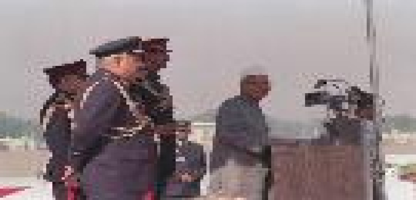 The President of India, Dr. Shankar Dayal Sharma presenting Standards to PTS and 14 Sqn and reviewing the Parade, at a function, in Ambala, Haryana on November 11, 1994.