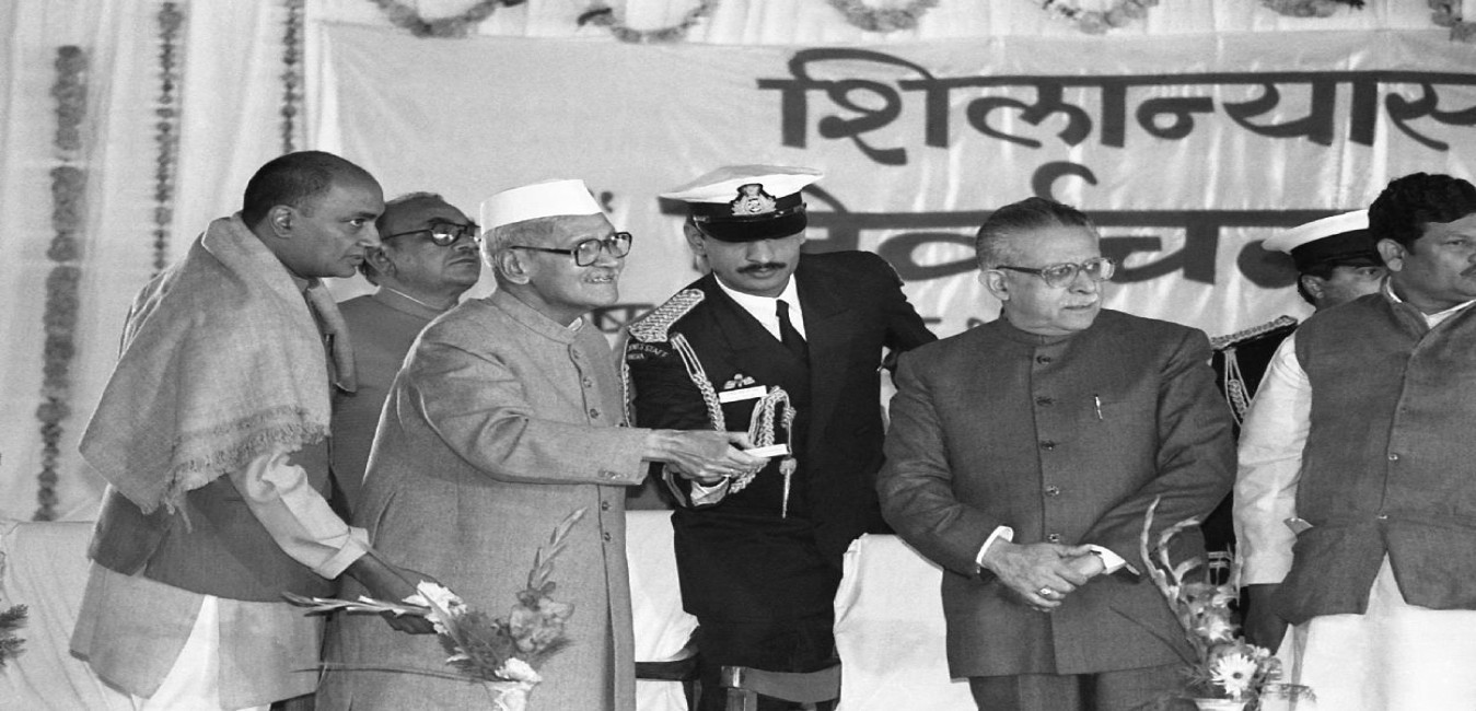 The President of India, Dr. Shankar Dayal Sharma laying the Foundation Stone for the Building of State Election Commission, at Bhopal, in Madhya Pradesh on January 12, 1995.