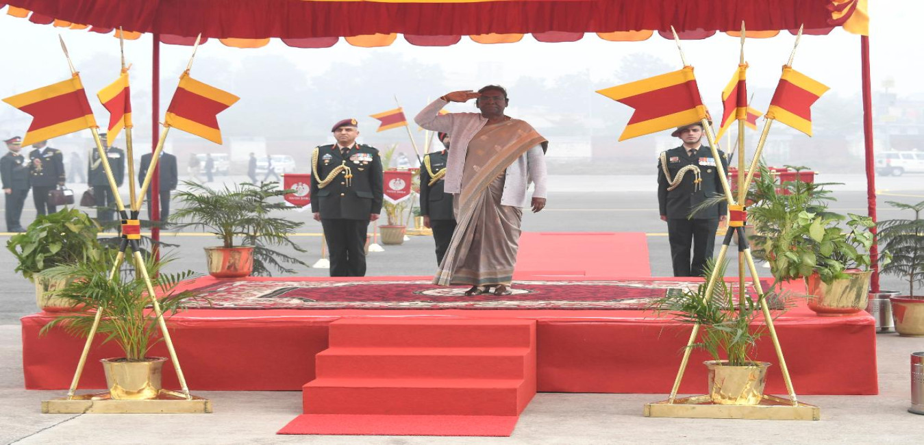 The Governor of Rajasthan, Shri Kalraj Mishra and the Chief Minister, Shri Ashok Gehlot received the President of India, Smt. Droupadi Murmu on her arrival, at Jaipur on January 03, 2023. The President was accorded a guard of honour on her first visit to Rajasthan.