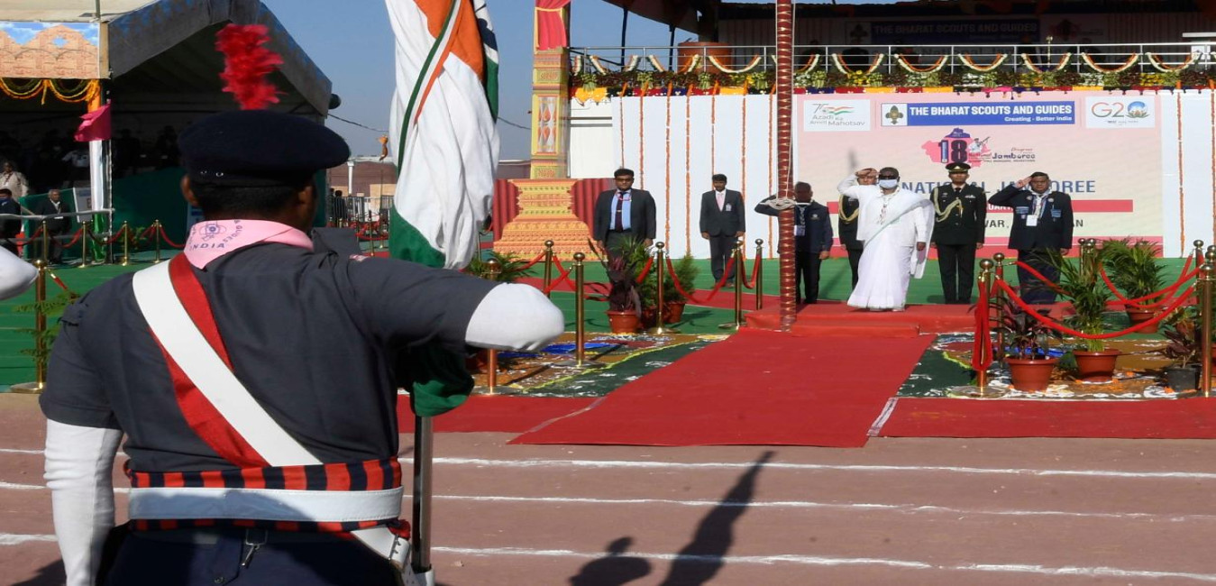 The President of India, Smt. Droupadi Murmu graced the inauguration of 18th National Jamboree of the Bharat Scouts and Guides, at Pali, in Rajasthan on January 04, 2023.