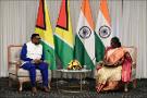 The President of the Cooperative Republic of Guyana, His Excellency Dr. Mohamed Irfaan Ali calling on the President of India, Smt. Droupadi Murmu, on the sidelines of 17th Pravasi Bharatiya Divas Convention, at Indore, in Madhya Pradesh on January 10, 2023.