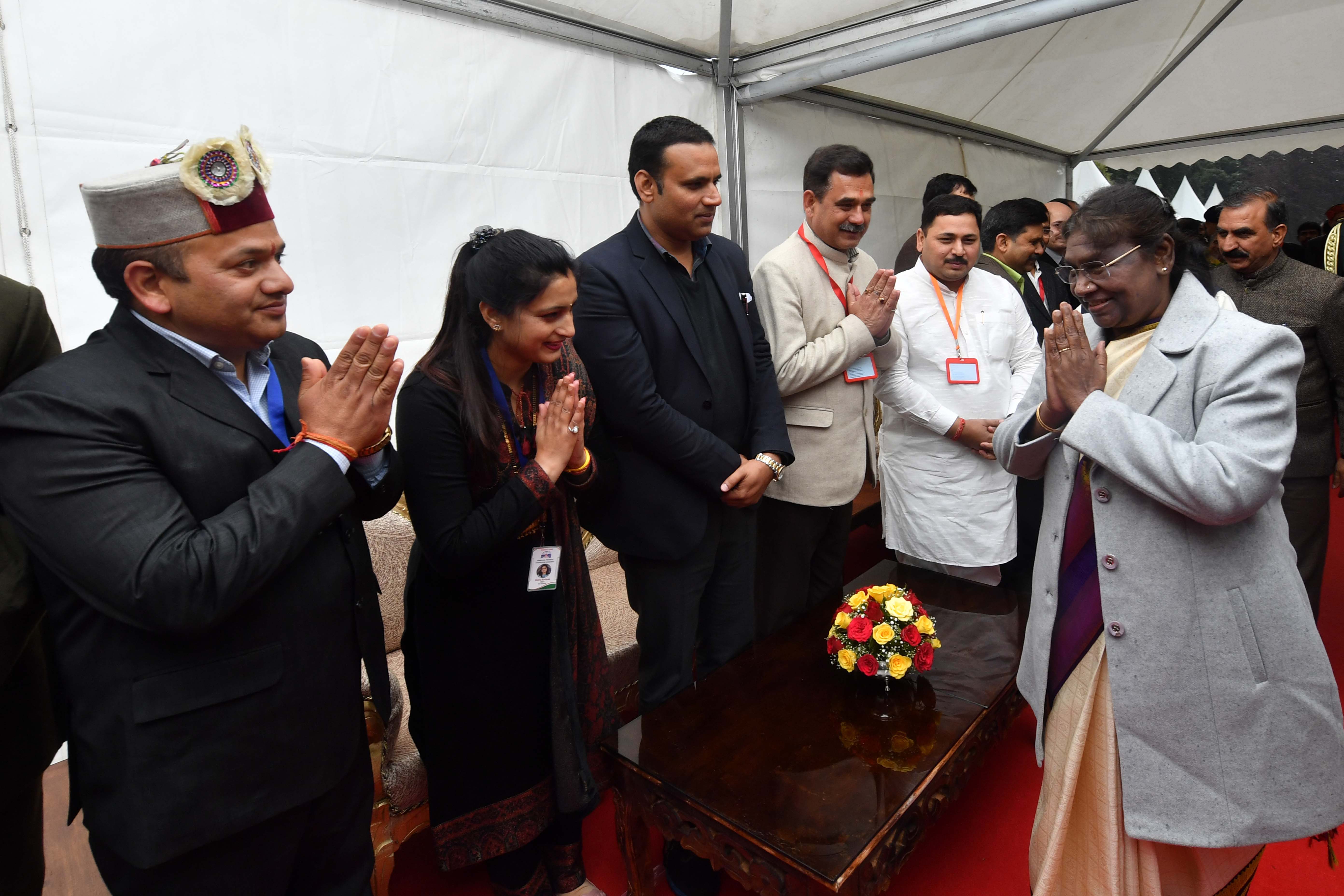 The President of India, Smt Droupadi Murmu attending the civic reception hosted in her honour by the Government of Himachal Pradesh at Raj Bhavan, Shimla on April 18, 2023.