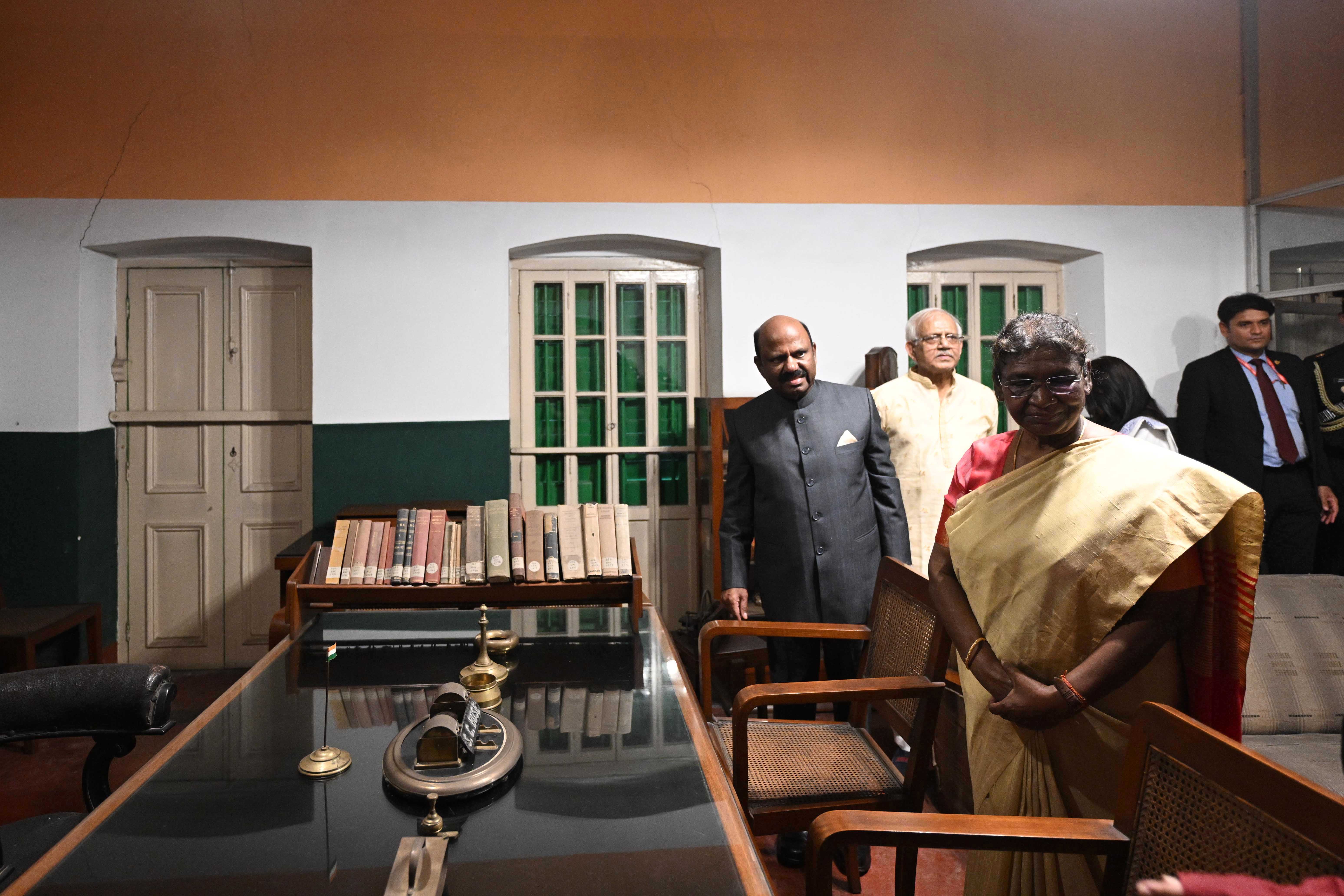 The President of India, Smt. Droupadi Murmu Paying Homage to Netaji Subhash Chandra Bose at Netaji Bhawan at Kolkata in West Bengal on March 27 , 2023