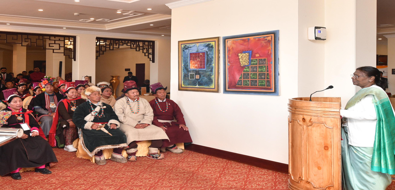 The President of India, Smt Droupadi Murmu interacted with members of local tribal groups and Self Help Groups of Ladakh on November 1, 2023.