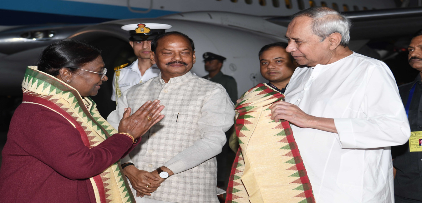 The Governor of Odisha, Shri Raghubar Das, The Chief Minister Shri Naveen Patnaik and The Union Minister of State for Tribal Affairs and Jal Shakti, Shri Bishweswar Tudu received the President of India Smt. Droupadi Murmu on her arrival at Bhubaneshwar, Odisha on November 26, 2023.