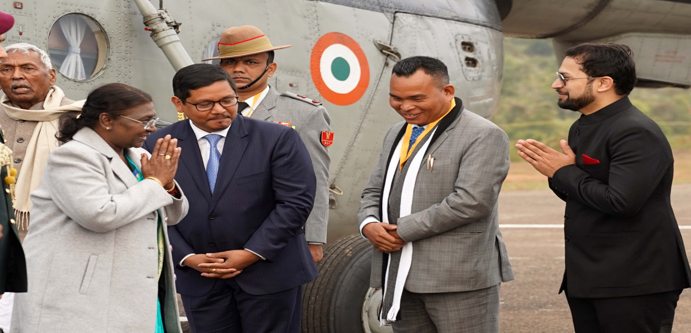 The Governor of Meghalaya, Shri Phagu Chauhan and Chief Minister, Shri Conrad K Sangma received the President of India Smt. Droupadi Murmu on her arrival at Baljak Airport on January 15, 2024.